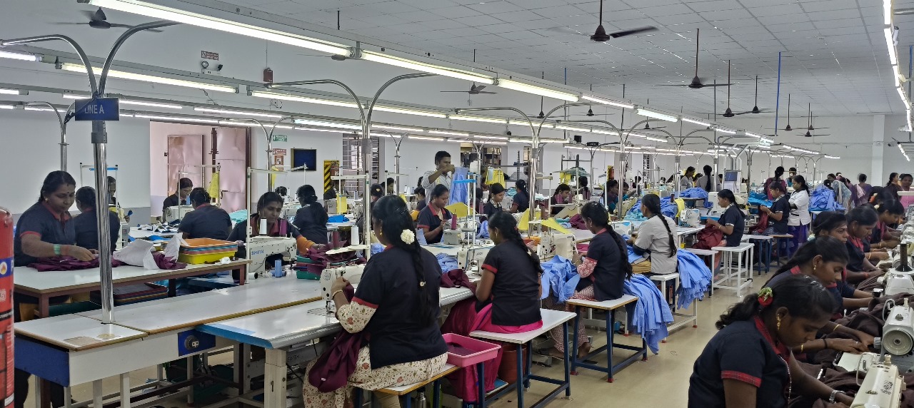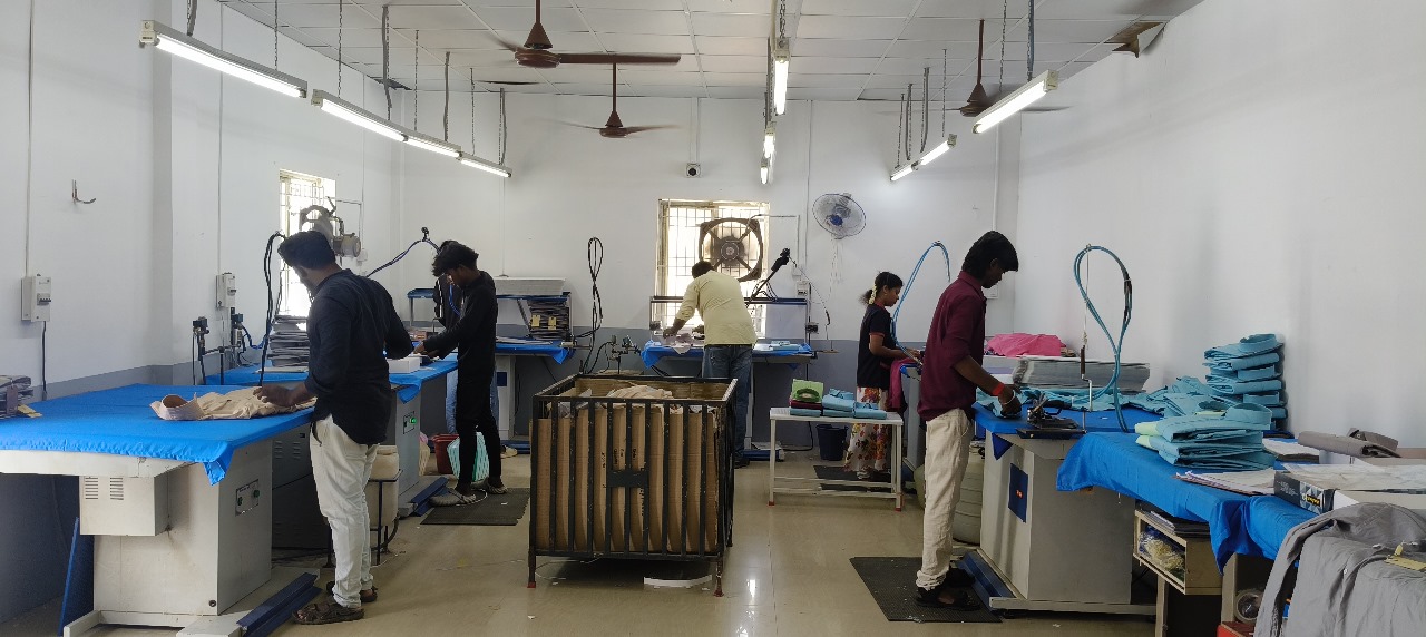 The unit has high-end electronic sewing machines like Single Needle Lock Stitch, Feed off the Arm, Single needle chain stitch machine, Multi-needle chain stitch machine, Overlock sewing machines, Flatlock machines, Double-needle lockstitch machine, Button holing machine, Button Sewing machine, Zig-zag sewing machine, Snap button attaching machine, back pocket welting machine, Jeans back pocket setter and Logo embroidery machine. Garment pressing and folding are done manually as per the client’s packing template requirement.